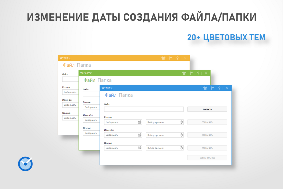 Хронос — программа для редактирования времени, даты создания файла/папки, с современным и функциональным дизайном. Благодаря небольшому размеру программа не будет занимать много места на диске и будет всегда «под рукой».