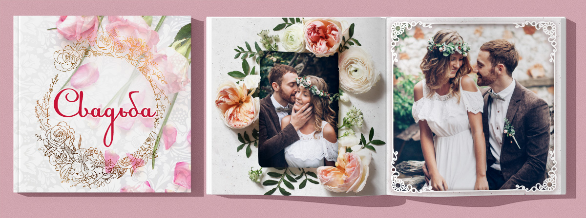 Свадебная тема для фотокниги выполнена в едином стиле, торжественном и в то же время нейтральном, главными особенностями которого являются свежесть и чистота.