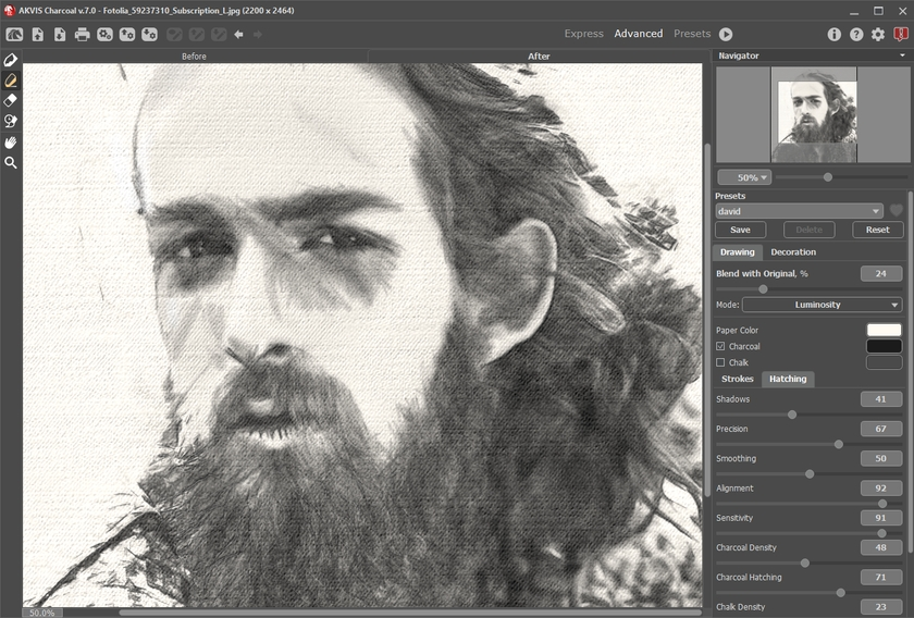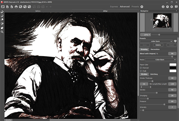 Создавайте впечатляющие рисунки углём из фотографий!Бесплатный ознакомительный период — 10 дней полнофункционального использования программы, без ограничений и регистрации.