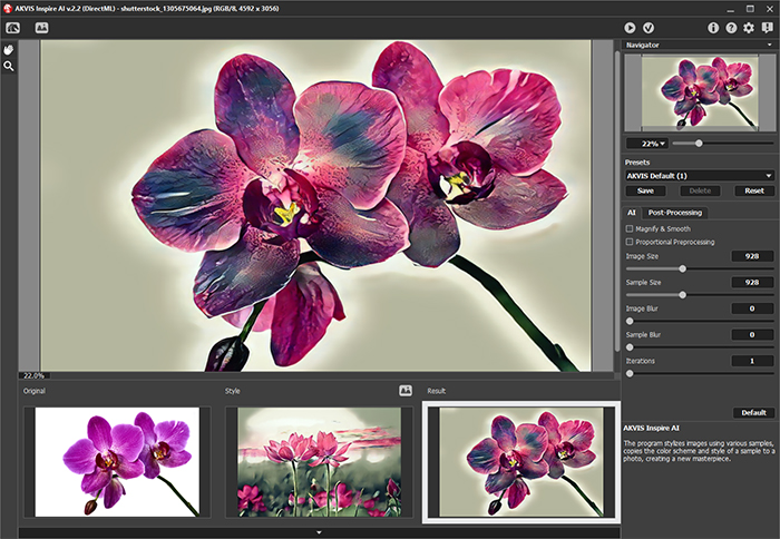 Стилизатор ИИ от АКВИС (AKVIS Inspire AI) выполняет стилизацию изображений под различные образцы живописи. Эта программа на основе искусственного интеллекта применяет на фотографию цветовую гамму и стиль выбранного произведения искусства, создавая новый шедевр. Превращайте фотографии в знаменитые картины с помощью искусственного интеллекта!