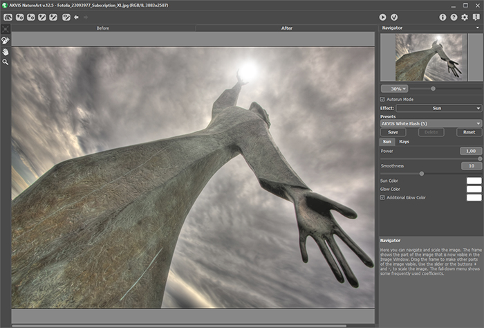 Если фотография выглядит не достаточно интересной, с помощью NatureArt можно привнести в неё драматизм, заставив силы природы разбушеваться, или, напротив, изменить настроение картины, добавив в неё мирный солнечный свет.