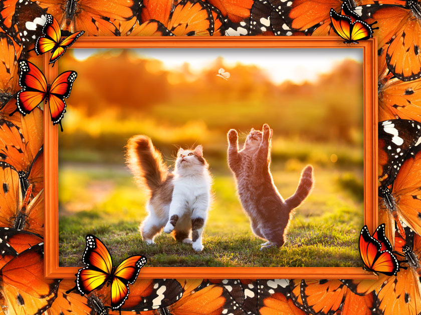 Набор Рамки с бабочками содержит 100 фоторамок высокого качества, 50 горизонтальных и 50 вертикальных шаблонов, наполненных очарованием и пленительной красотой бабочек.