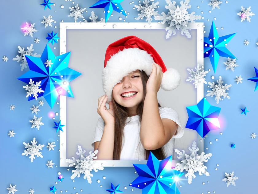 Даже если прогноз погоды не обещает снега, можно придать фотографиям зимнее настроение с помощью рамок с волшебными снежинками. Оформите свои праздничные фотографии, создайте замечательную новогоднюю открытку. Такая коллекция рамок — прекрасная идея подарка на Новый год. Пусть идет снег! Посмотреть рамки. Рамки можно использовать в бесплатной программе AKVIS Frames.