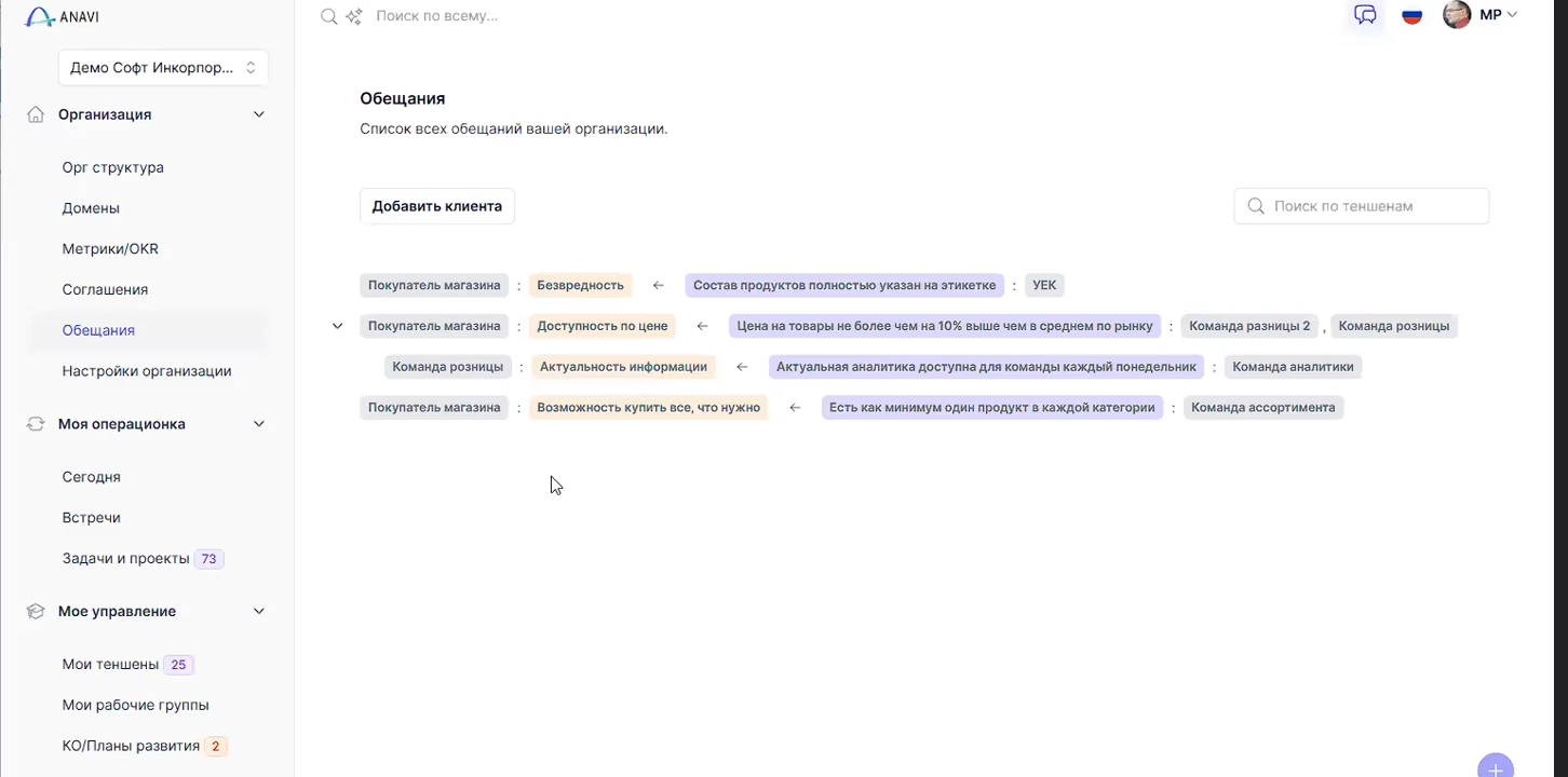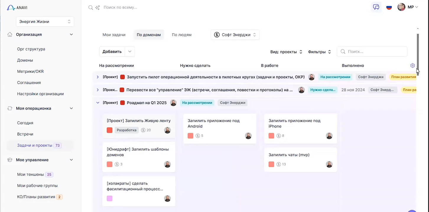 Решение: ANAVI объединяет всё, что важно — встречи, задачи, метрики и соглашения — в одном рабочем пространстве. Видно, кто за что отвечает и какие действия запланированы.