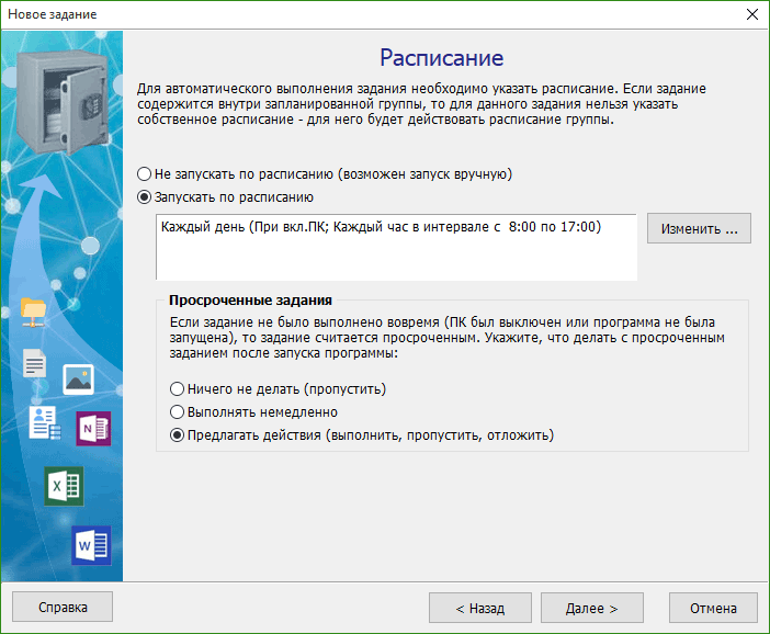 - Создание резервных копий автоматически по расписанию, либо вручную; гибкая настройка расписания, возможность резервного копирования при включении/выключении ПК, подключении флешки или жесткого диска в порт USB, а также запуск задания из командной строки.
