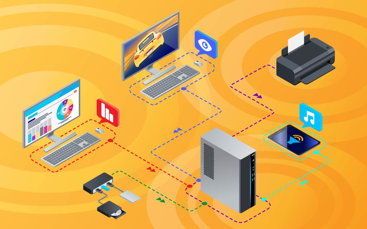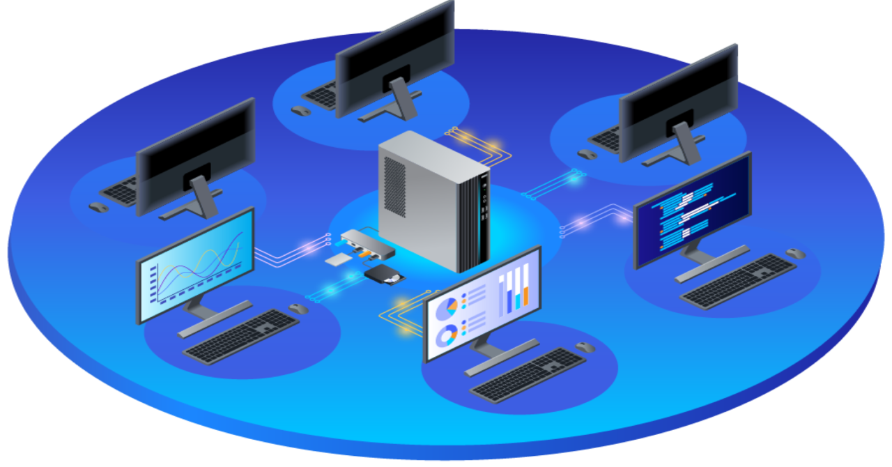 Программа разделит каждый компьютер на несколько независимых рабочих мест, что позволит увеличить количество рабочих мест на уже имеющемся оборудовании и отказаться от покупки новых системных блоков или тонких клиентов.