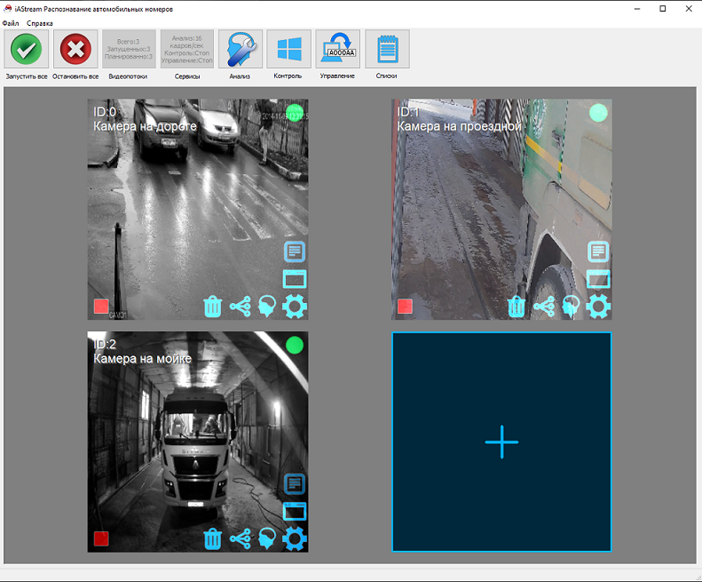 iAStream — программный комплекс, предназначенный для автоматического распознавания автомобильных номеров. Основное назначение программного комплекса — это интеллектуальная обработка видеопотоков и видеофайлов с выдачей результатов распознавания, которые могут посылаться другому программному обеспечению, аппаратуре, логироваться и анализироваться. Программа позволяет добавлять камеры, а затем настраивать, какие модули распознавания будут использоваться на данном видеопотоке, сохранять ли видеопоток с камеры в видеофайлы, передавать ли сигналы управления по событию.