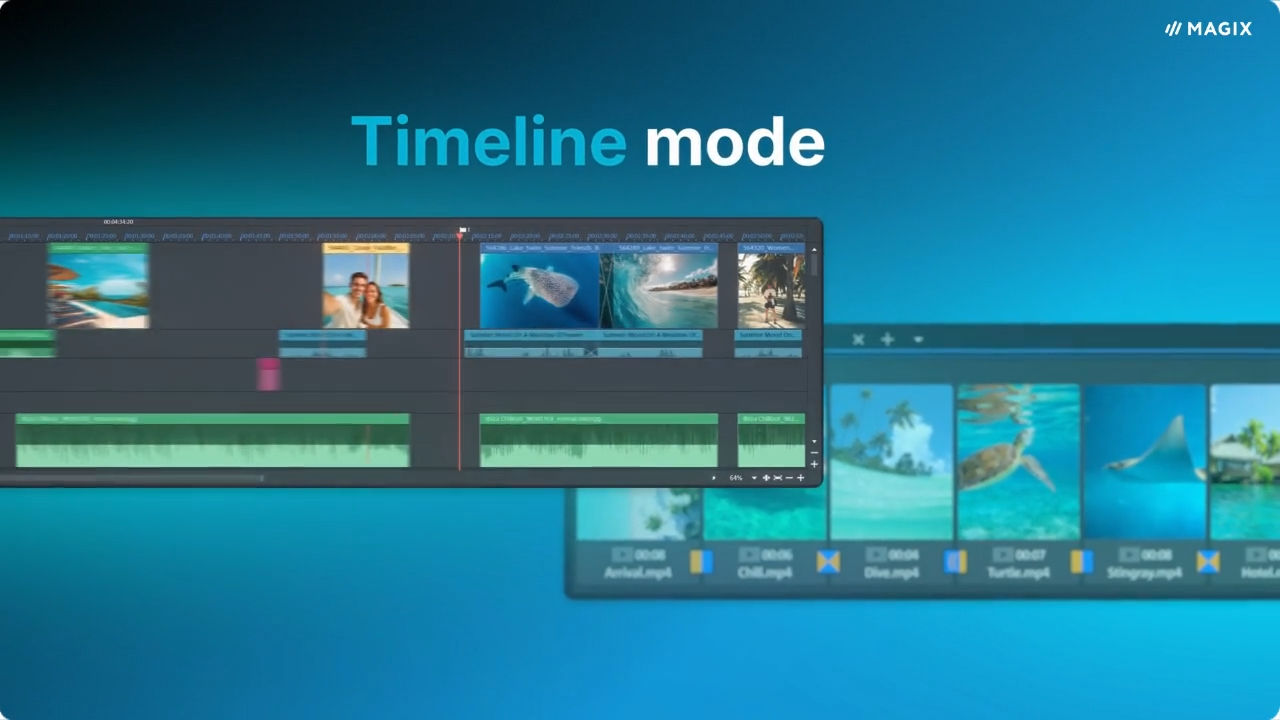 Magix Movie Studio — полнофункциональное решение для работы с видео. Включает в себя все необходимые инструменты для редактирования видео в профессиональном качестве, содержит встроенную библиотеку эффектов переходов и отлично подходит как для новичков, так и для профессионалов.