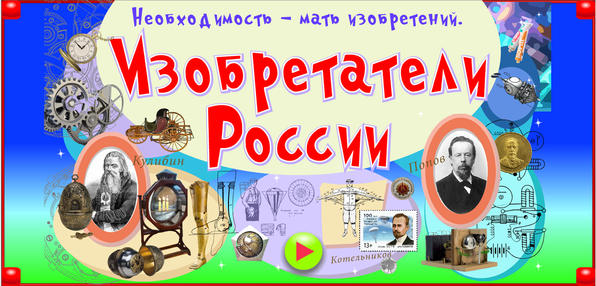 Программа «Изобретатели России» представляет собой игру для знакомства детей 6-10 лет с наиболее известными изобретателями нашей страны.