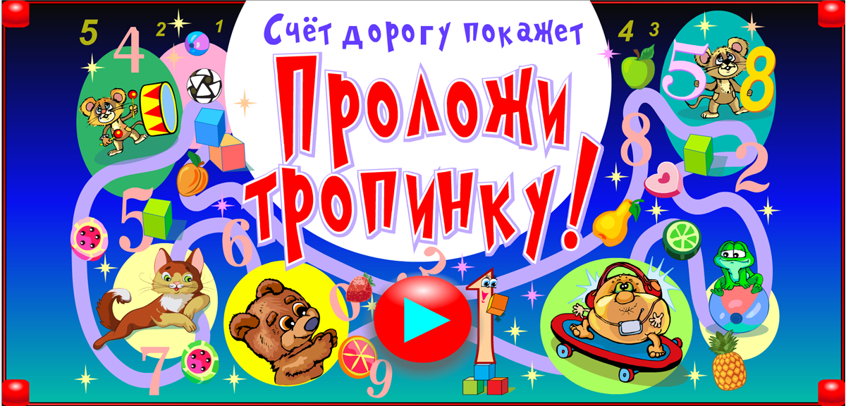 «Проложи тропинку!» представляет собой игру-тренажёр для обучения детей от 4-х лет устному счёту в пределах 10, 20, 30, 40 или 50.