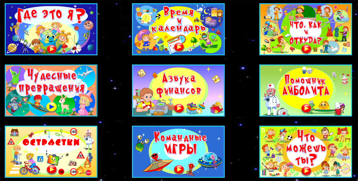 1. Раздел "Где это я?" ыключает набор игр для знакомства детей с окружающим миром и нашим местом в нём
