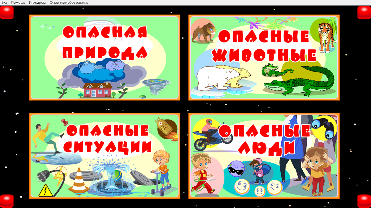 7. Раздел "Острастки" включает набор видеороликов для знакомства детей с опасными явлениями природы, опасными ситуациями, опасными животными и опасными людьми, которые им могут встретиться.