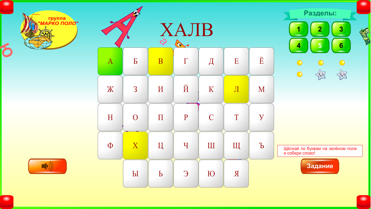 1. Блок «Букварик» представляет собой программу-тренажёр для обучения детей азбуке.