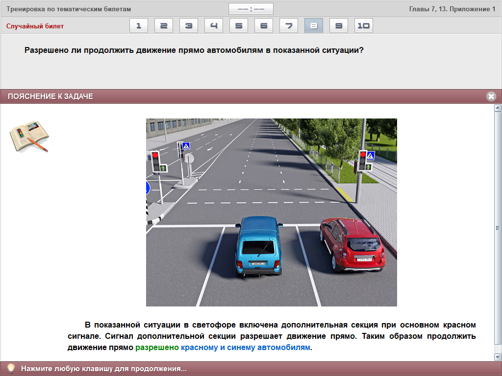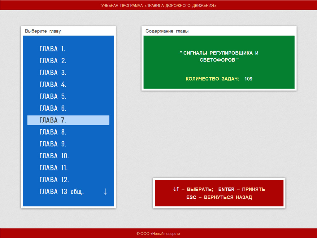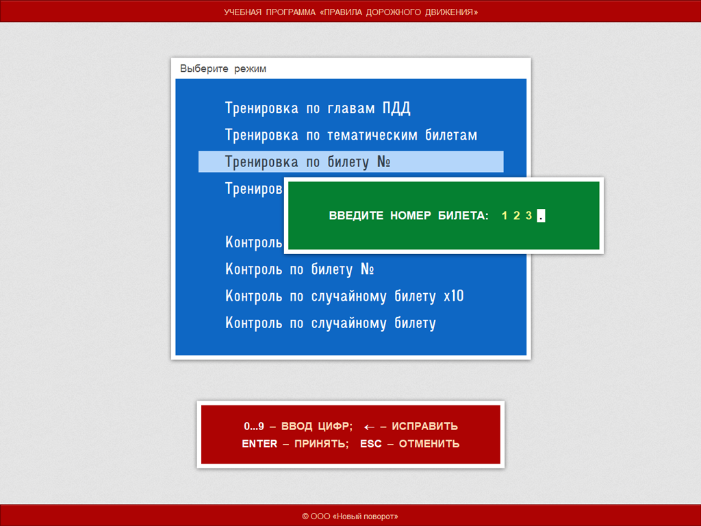 - В программе предусмотрены четыре тренировочных режима решения билетов: по главам ПДД (задачи распределены по главам ПДД), по тематическим, комплексным и случайным билетам. В режимах тренировки правильный ответ «подсказывается» при втором неправильном ответе.