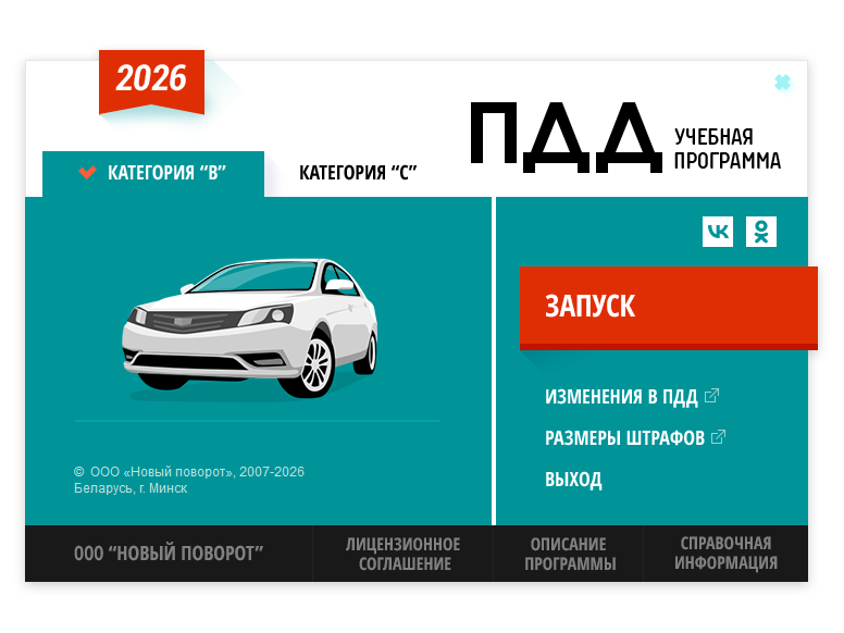 «Учебная программа ПДД» предназначена для изучения Правил дорожного движения Республики Беларусь и подготовки будущих водителей транспортных средств категорий «B» и «C» к теоретическому экзамену ГАИ. Программа будет также полезна водителям со стажем, которые с ее помощью могут проверить и освежить свои знания ПДД.