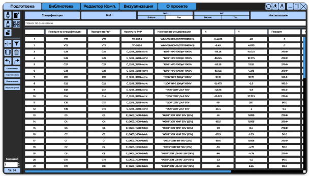 SMT Optimizer позволяет быстро загружать и редактировать PnP и BOM-файлы в виде интерактивных таблиц, что упрощает контроль над списком компонентов и их расположением на плате.