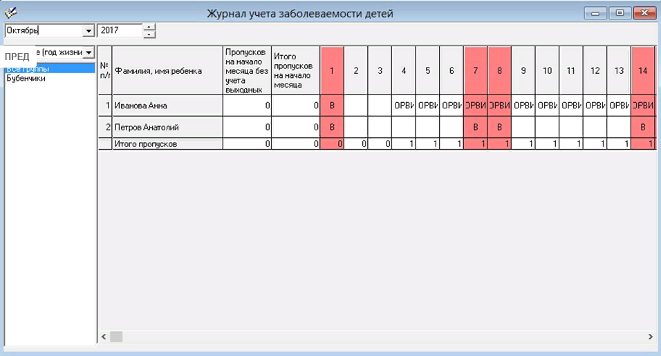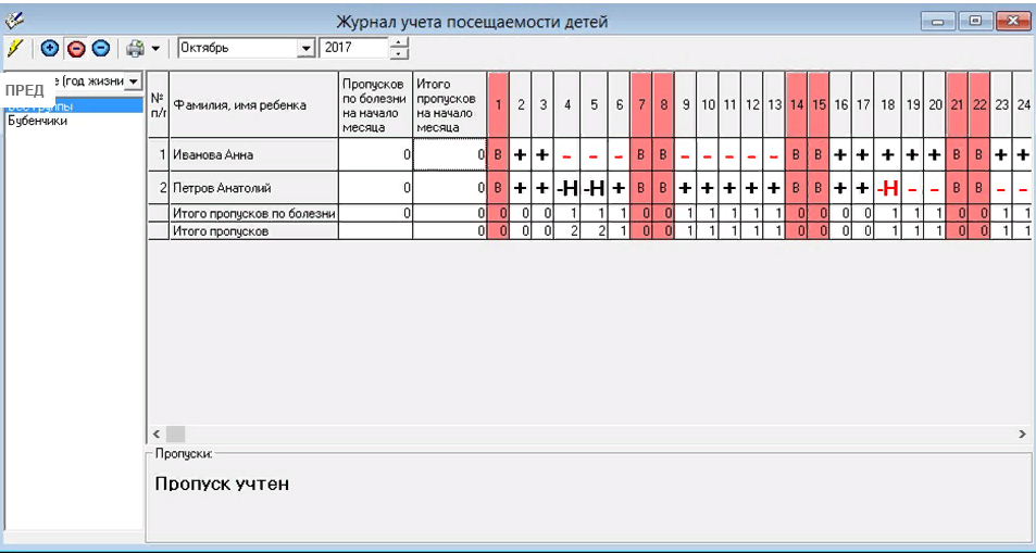 - Ввод ежедневной посещаемости и заболеваемости детей.