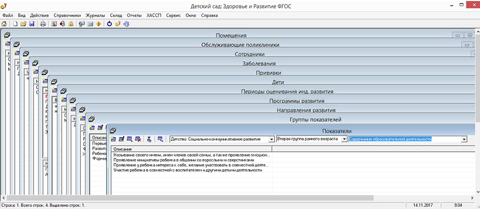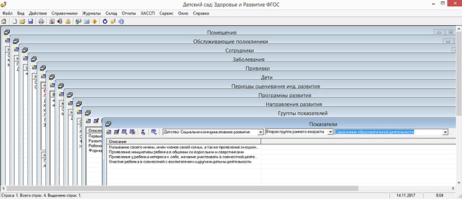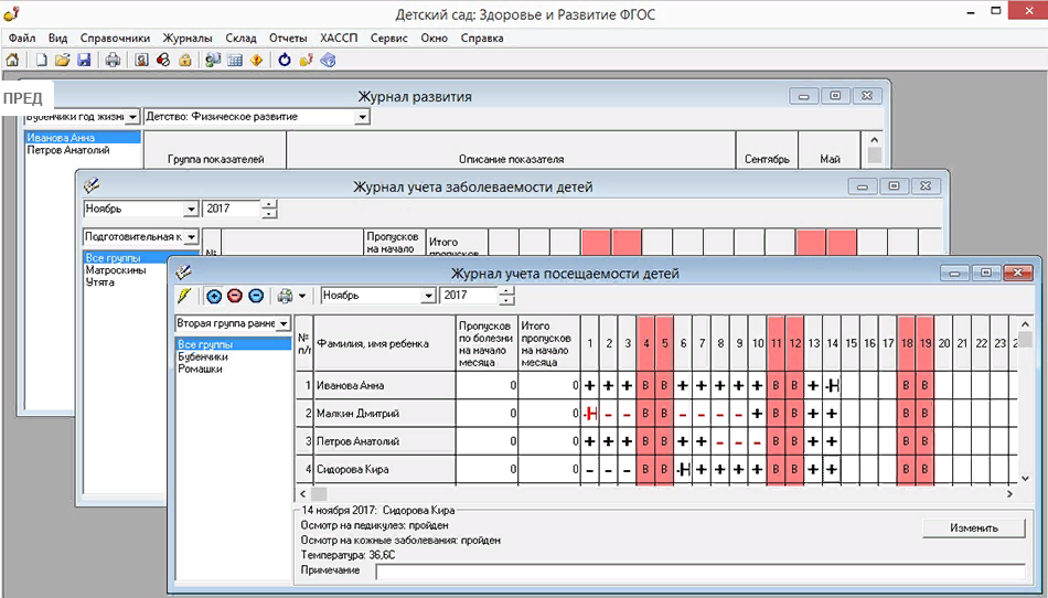 - Ведение базы данных для анализа развития детей (индивидуально по детям).