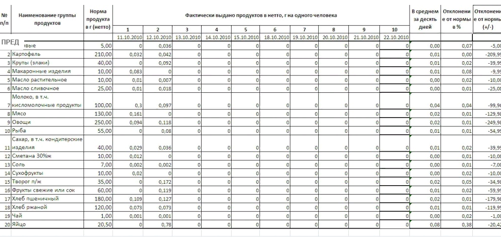 - Анализ отклонения фактической себестоимости дето-дня от плана; анализ плана-меню на соответствие нормам питания СанПиН 2.4.5.2409-08.
