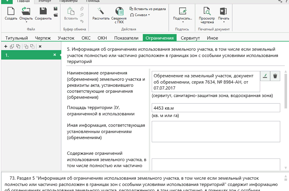 - Расчет показателей (например, площадь, расчет масштаба чертежа), автоматическое заполнение сведений, перенос данных из раздела в раздел