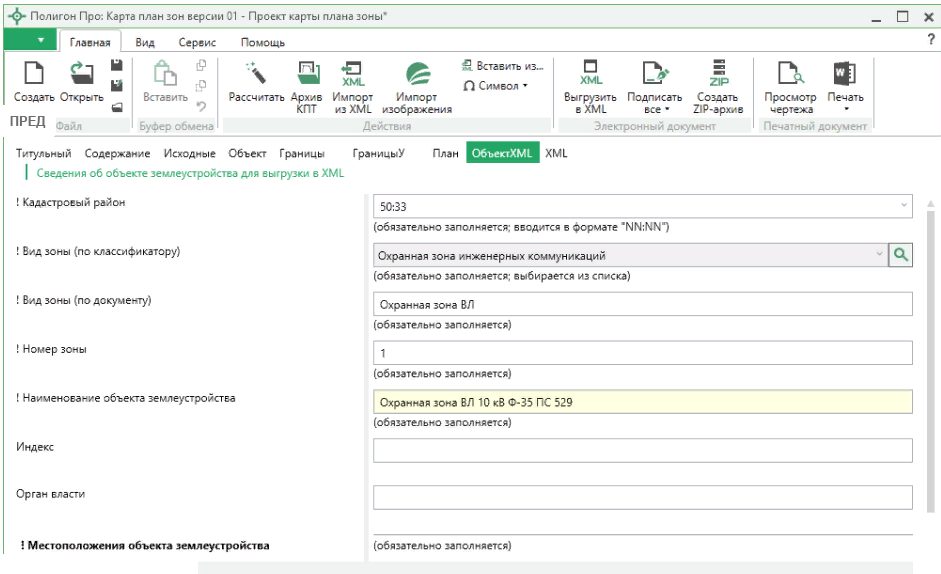 «Полигон Про: Карта план» - программа для оформления карты (плана) объекта землеустройства (территориальных зон, ЗОУИТ, СЗЗ, особых экономических зон).