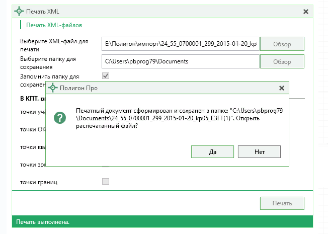 «Полигон Про: Печать XML» — программный модуль для печати XML-файлов, в том числе полученных в Росреестре (КПТ, кадастровых выписок и паспортов ЗУ, выписок и паспортов ОКС и др.) и сдаваемых в Росреестр (межевых, технических планов, карт планов и др.).