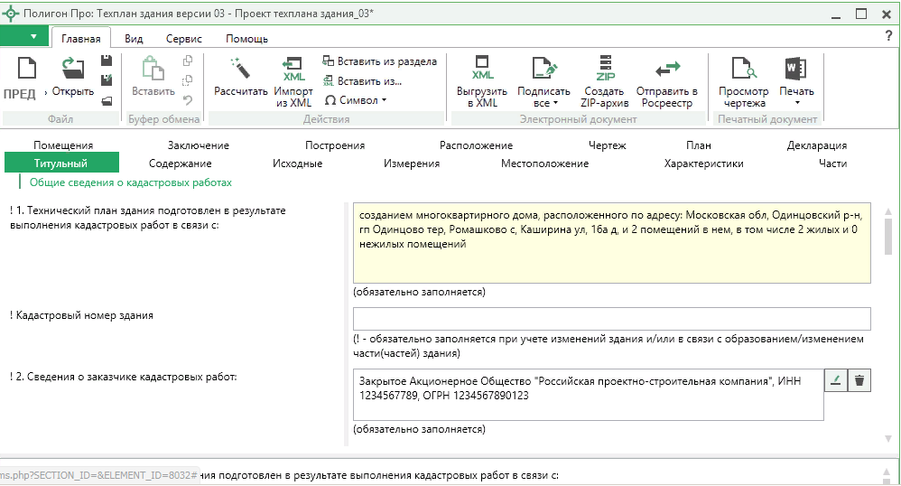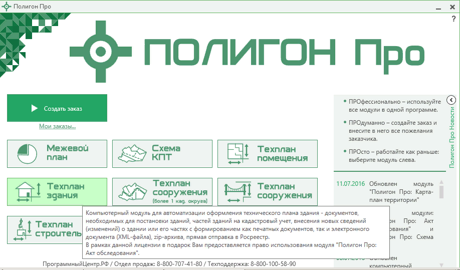 «Полигон Про: Техплан здания» — программа для автоматизации оформления технического плана здания - документов, необходимых для постановки зданий, частей зданий на кадастровый учет, внесения новых сведений (изменений) о здании или его частях, с формированием как печатных документов, так и электронных XML-документов, созданием ZIP-архива для сдачи в ОКУ и отправки в Росреестр.