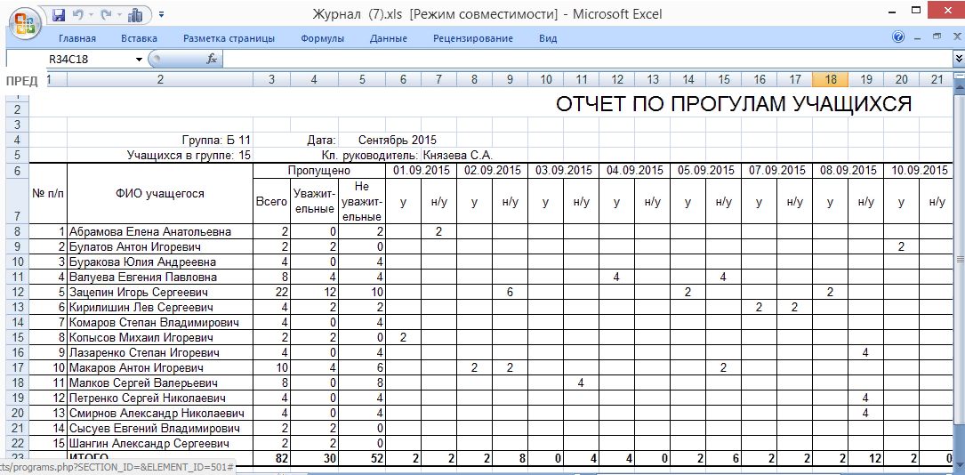 - Составление ведомости, сводной ведомости, табеля успеваемости.