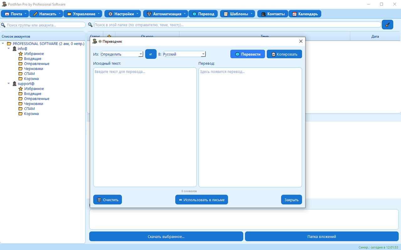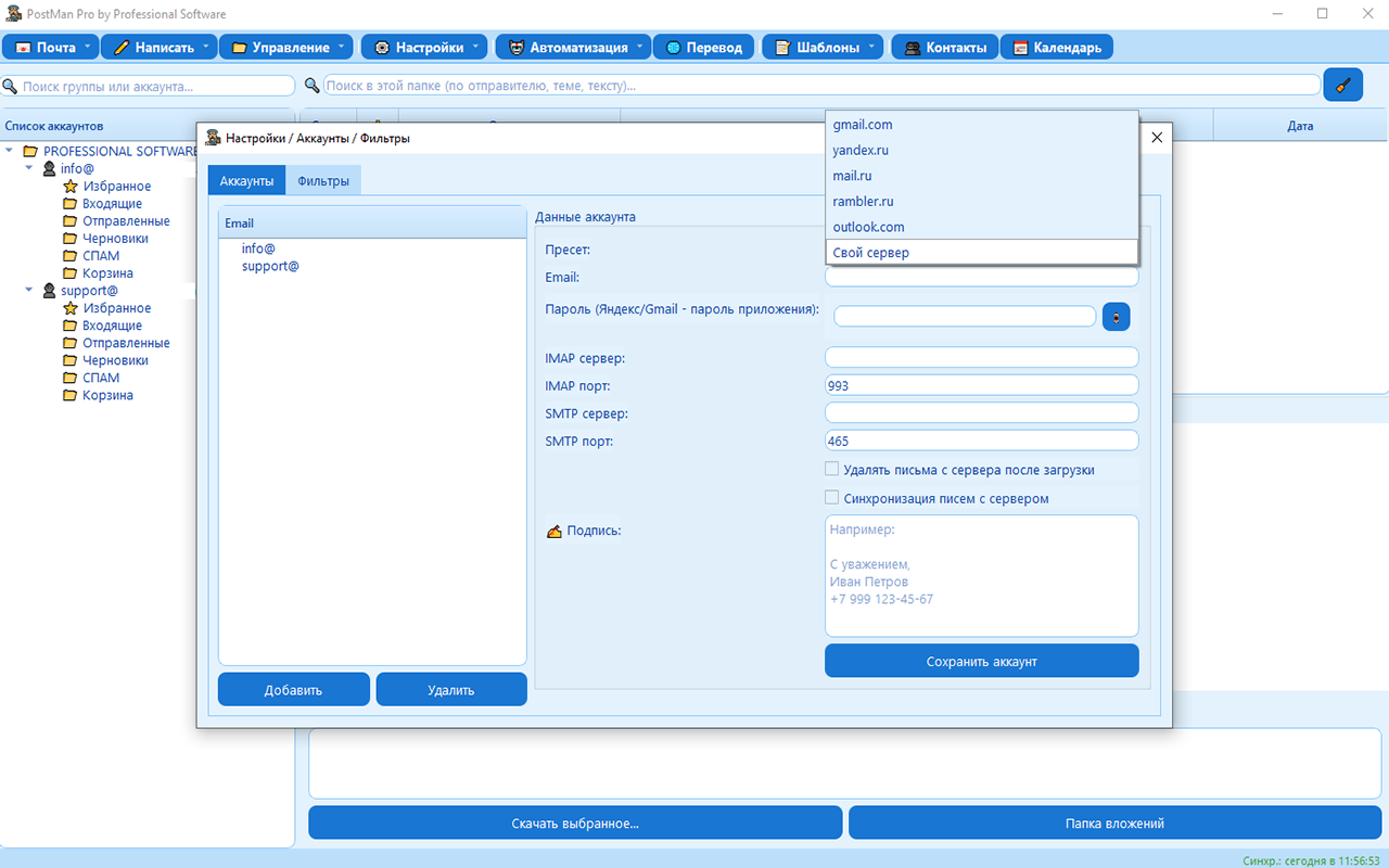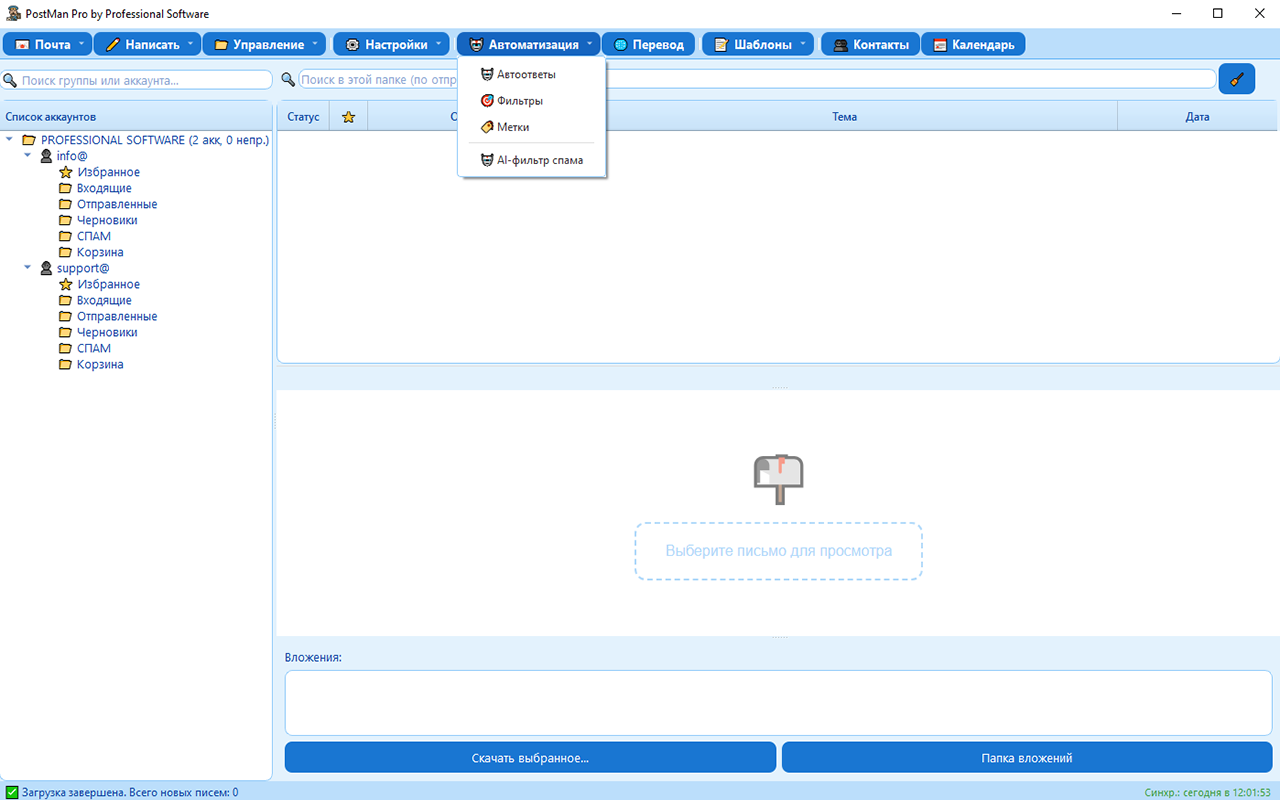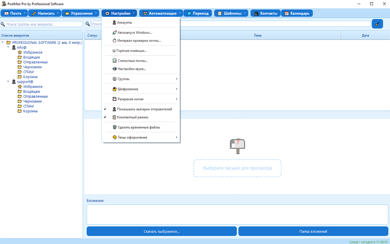 PostMan Pro — это программа для управления электронной почтой, контактами и расписанием. Все данные хранятся локально на вашем компьютере, что обеспечивает быстрый доступ и независимость от облачных сервисов.