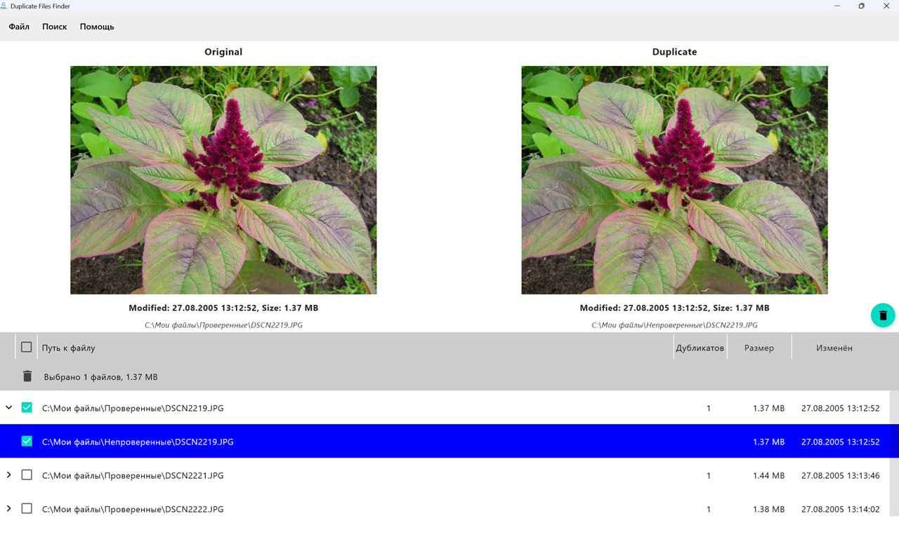Приложение Duplicate File Finder позволяет находить дубликаты файлов в разных папках дисков и удалять их. Программа находит одинаковые файлы на компьютере, после чего можно посмотреть результат поиска и решить, удалить или оставить файлы на диске.