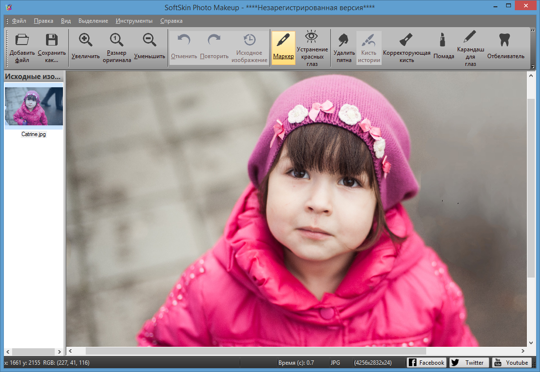C SoftSkin Photo Makeup редактирование портретов становится удивительно простым. Вы легко удалите небольшие дефекты кожи, такие как родинки, шрамы и морщины. Программа может сделать зубы и белки глаз белее, удалить тёмные пятна и сделать портрет намного симпатичнее.