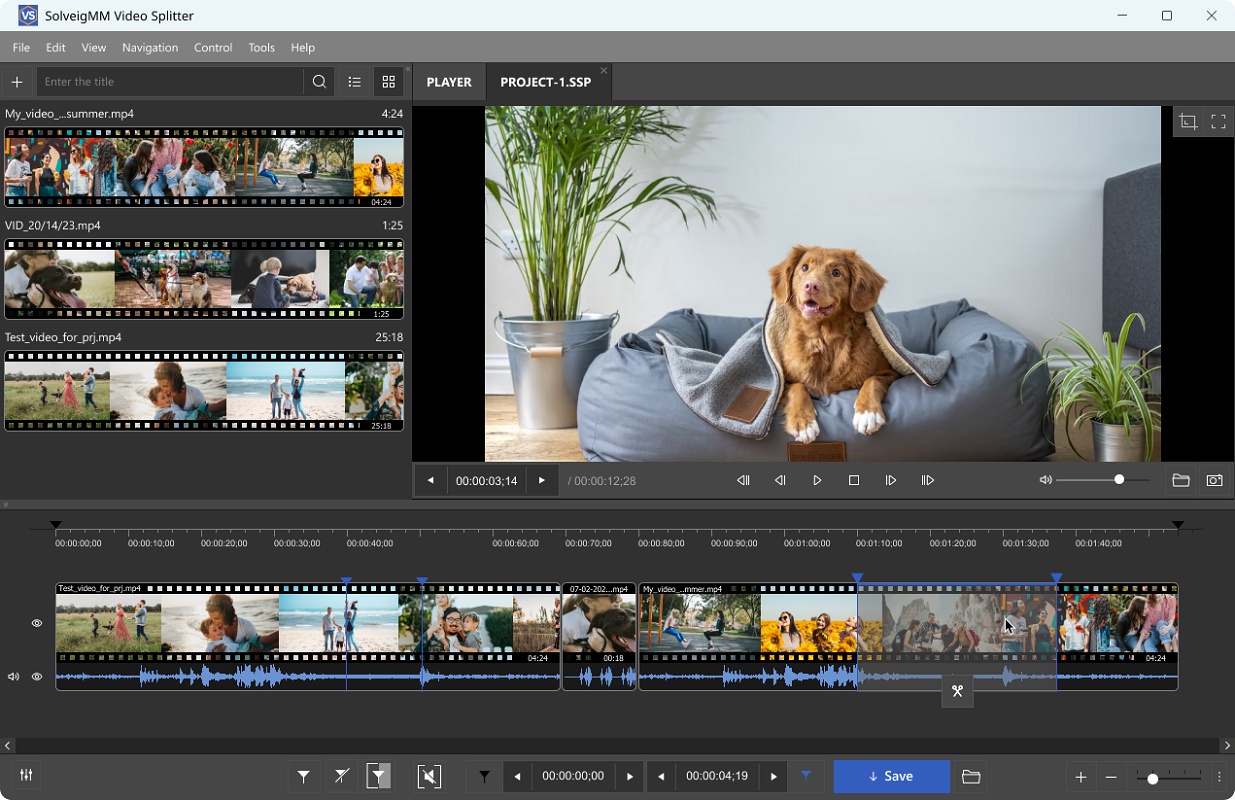 SolveigMM Video Splitter — редактор для MPEG-2/MPEG-1, AVI, WMV, ASF, MP4, MKV, MOV, AVCHD, WEBM, FLV, MP3, WMA, WAV файлов.
